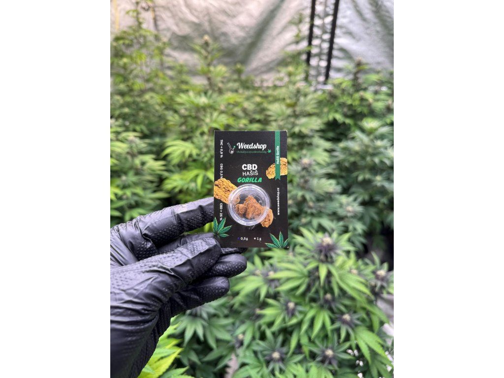 CBD hašiš Gorilla s vysokým obsahem kanabinoidů. Obsah CBD u tohoto hašiše je 20 - 25 % a THC 0,95 %. CBD hašiš má zelenou barvu a svěží vůni po klasickém konopí. CBD Hašiš Gorilla pochází z rostlin z české indoor pěstírny, kde pro vás pěstujeme rostliny za pomocí nejmodernější technologie LED osvětlení, za použití organických hnojiv.