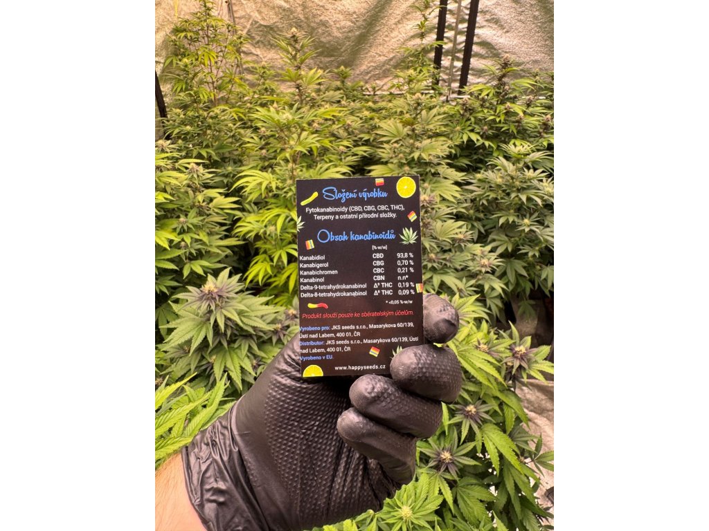 Konopný CBD dab s příchutí Super Sour Diesel od značky Happy seeds v balení po 0,25 g, 0,5 g nebo 1 gramu.