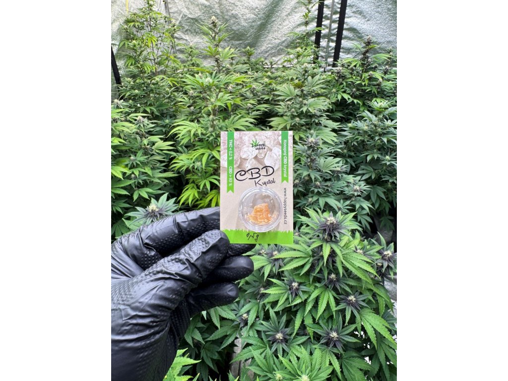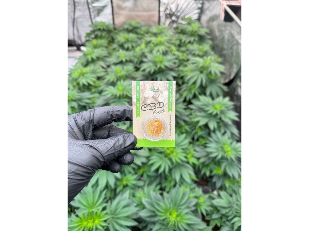 CBD krystal od značky Happy seeds v balení 0,5 g nebo 1 g. Tento CBD krystal byl vyroben z těch nejkvalitnějších rostlin technického konopí pěstovaných na území Švýcarska. Díky tomu, že byly při jeho výrobě použity celé rostliny konopí je obsah CBD 93 % a naleznete v něm tak další prospěšné kanabinoidy jako je CBG, CBC a THC v zákoně povoleném množství do 0,2 %. Dále ve složení naleznete další přírodní složky z konopí jako jsou např terpeny, flavonoidy, rostlinné vosky, aminokyseliny, vitaminy a rostlinné barvivo.