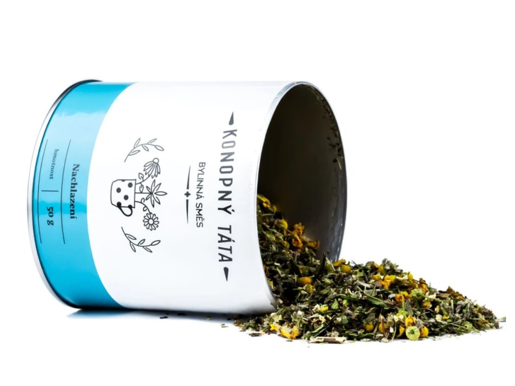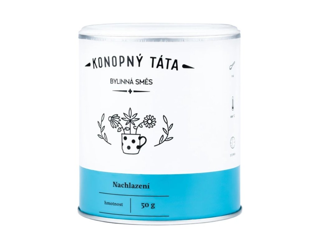 Konopný čaj Nachlazení od značky Konopný Táta (50 g) je silná bylinná směs s diviznou, lípou, černým bezem a echinaceou. Ideální přírodní pomocník pro uvolnění dýchacích cest, podporu pocení a posílení imunity v sychravém období.
