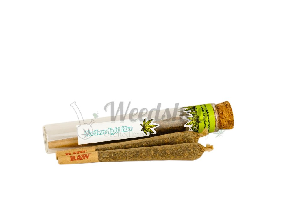 Na každý předrolovaný CBD joint z weedshopu z konopné odrůdy Northern Light Blue bylo použito 0,9 - 1,1 gramu konopí s vysokým obsahem CBD. V našich CBD jointech najdete až 14 % CBD a THC 0,5 %. Každý jednotlivý joint je obalen do neběleného cigaretového papírku od populární americké značky RAW. Pokud tato značka patří k vaším oblíbeným ale nezaujal vás tento produkt vyzkoušejte jiné produkty od této značky z naší nabídky. Tyto speciální nebělené papírky zaručují pomalé hoření a neovlivňují nikterak chuť konopné cigarety.