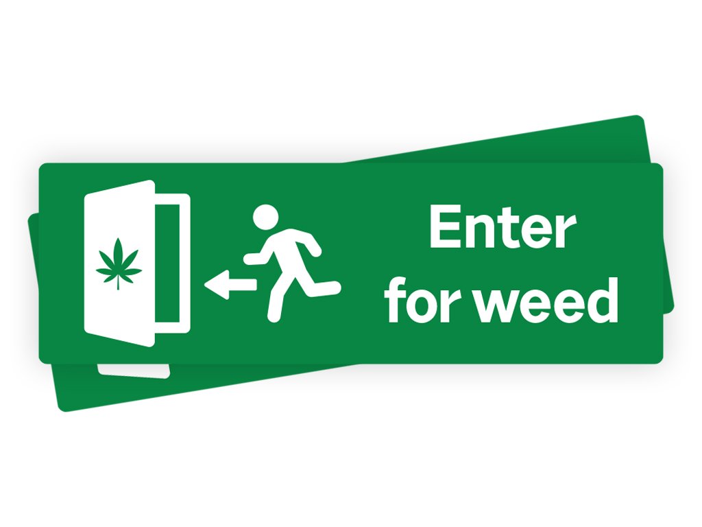 Samolepka s nápisem Enter for weed pro každého kdo hledá originální samolepku s tématem konopí. Na samolepce najdete symbol únikového východu s motivem konopného listu, který běžně označuje únikový východ ale tentokrát a nápisem Enter for weed. Ideální samolepka na dveře vašeho pokoje nebo vaší klubovny, kde si s přáteli vychutnáváte CBD konopí, marihuanu či další konopné produkty.