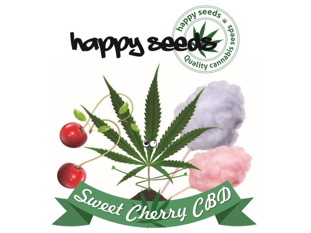 Feminizovaná semena konopí odrůdy Sweet Cherry CBD od značky happy seeds v balení po 1 nebo 5 ks. Obsah CBD 7-16% a obsah THC pod 1 %.
